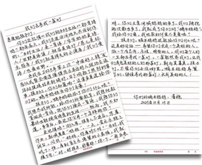 这些朴素的话语,节选自我们身边榜样“中国好人”的家书。这些书信没有华丽的辞藻,却饱含着写信人真挚的情感,其中有日常烟火里的温暖微光,也有平凡生活中的向善力量。点点滴滴的爱,汇成一股股暖流;丝丝缕缕的善,织就一道道彩虹。