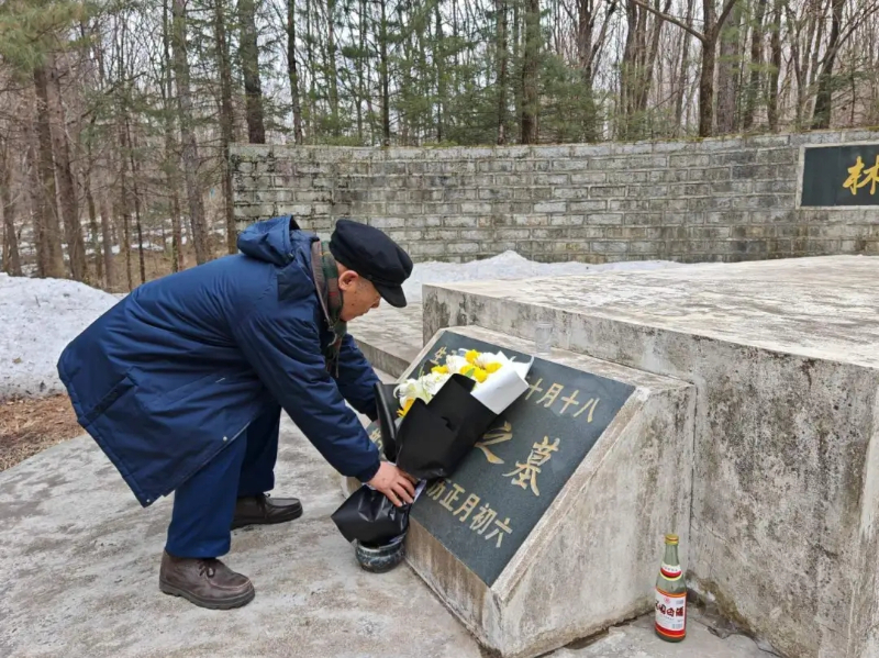 2025年清明节前夕,铁力林区仍被白雪覆盖,哈依公路旁的马永顺墓地上又出现了人们熟悉的身影。由于前一天刚刚下了雪,第二天一早,张道廷就扛着扫帚和塑料锹,拎着装有“花园”白酒、毛巾等物品的小包来到了墓地甬道入口处。