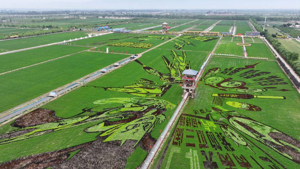 2025年6月18日,稻渔空间乡村生态观光园的巨幅稻田画(无人机照片)。王鹏 摄