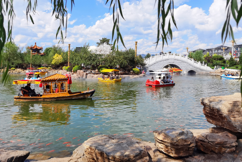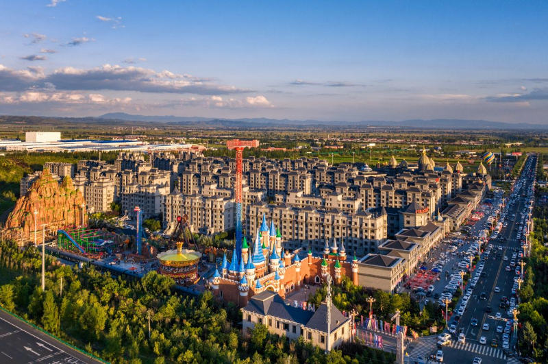村西是古朴典雅的传统院落,村东是欧式的现代楼宇,两种风格竟然毫无违和感。湖光山色间,微风一起,碧波荡漾,“云雾”缭绕。“晋”味十足的民俗大集和超现实格调的恼包水世界比邻而居,颇有“迪士尼”韵味的游乐场与恼包摩天轮南北呼应,别有风趣。